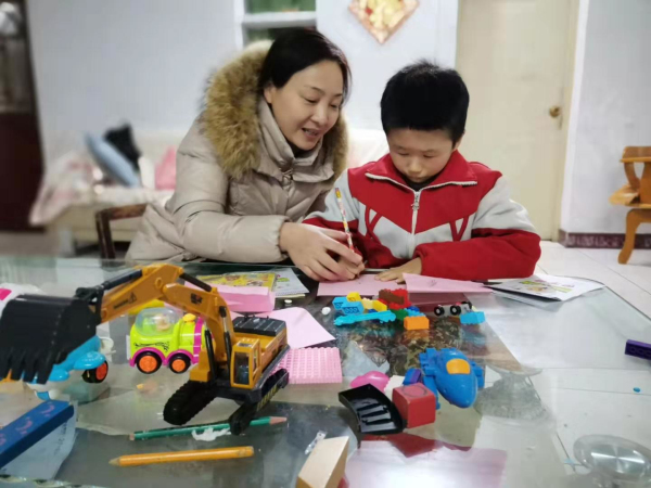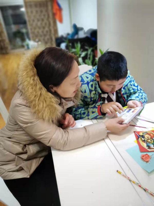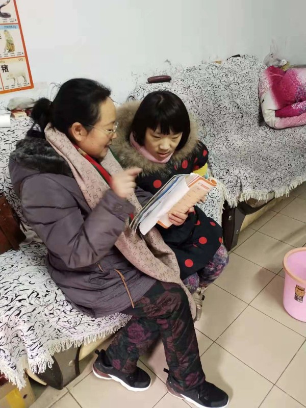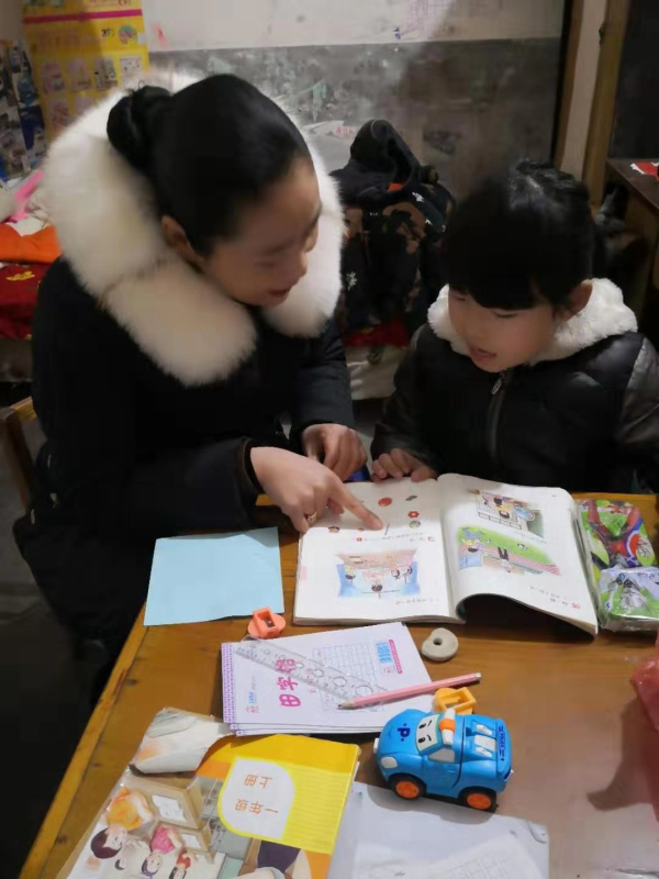 周冬梅老师来到熠熠家中,询问了这一周来孩子的学习和生活情况,又把精心准备的教学内容认真地讲给孩子听。面对着渴求知识的大眼睛,周老师心中充满着满满的责任感,更坚定了心中神圣的信念。