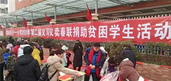 汇涓涓细流 润人间草木——南阳市十一小举行第二届义卖春联救助贫困学生活动 中广视网讯:1月18日,农历腊月二十四,南阳市第十一小学第二届义卖春联救助贫困学生启动。现场气氛热烈,多名书法爱好者和学生、家长、社会群众到场助兴。