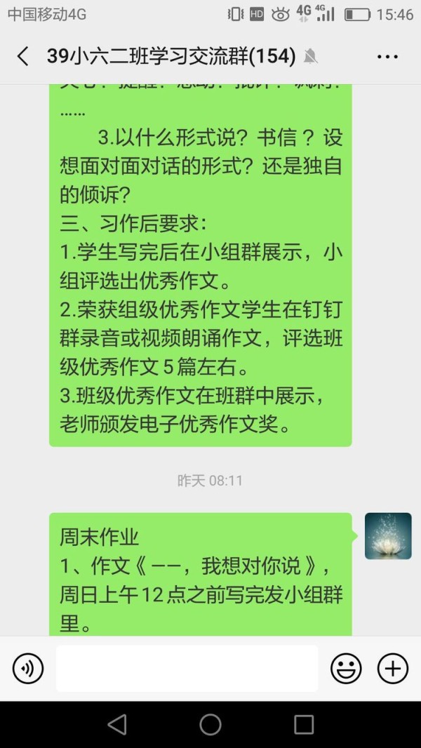 本次活动分三步:第一,学生的作品在小组群展示,评出组级优秀作文;第二步,荣获组级优秀作文的学生在钉钉群录音或视频朗诵作文,评选出班级优秀作文五篇左右;第三步,由老师颁发电子优秀作文奖。