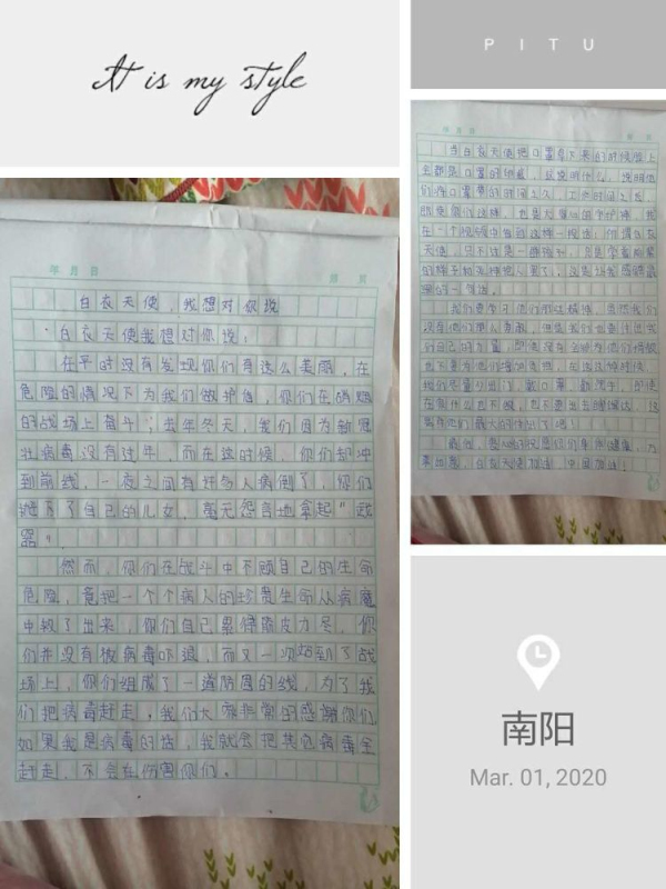 对那些逆风而行,奔赴一线的“逆行者”们,孩子们心中充满了深深的敬意,他们纷纷以“______,我想对你说”为题,表达自己心中的感动!