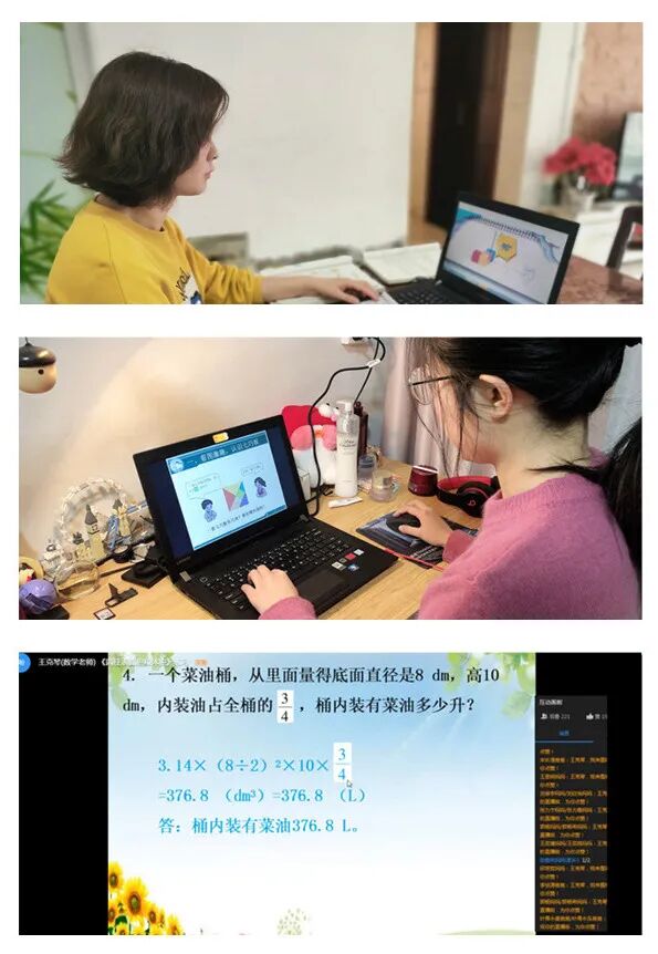 体育老师们精心准备 带领孩子们体育锻炼 妙趣横生、寓教于乐的音乐、美术课 孩子们欢喜不已 精彩课程的背后,是每一位三十一小教育人不忘初心的教育热忱。疫情当前,老师们一如既往地直面挑战,熟悉“线上教学”平台操作,查找网络资源,精心设计课堂,利用直播、微课、录音、文档、幻灯片、小视频等多种形式充实课堂,用一份份特殊的线上课程,教会了孩子们如何上好“笑对苦难”这堂人生大课。 认真负责的三十一小“网红主播” 每日上线为孩子们网络授课 每天的课程安排提前发至班级群 以便同学和家长们提前做好安排 老师们针对孩子们的学习问题进行线上解惑 并认真批改每一位孩子的作业 给予每一个孩子鼓励与赞扬 线上云教研 助力生成长 线上教研不停歇 “云课堂”中一节节精彩的课程呈现,源自老师们精细、务实的教研工作。 课前,年级组几位老师都会先进行教研,发挥全组智慧,确定教学内容,制作课件,力争教学环节环环相扣。每一位教师都遵循教材,考虑学情,认真准备每一节课,并根据学生上课的回答情况、课后作业情况给予指导。 课后,同年级的几位老师及时教研,针对课堂上的问题进行讨论,商讨解决方案。 停课不停教,不停学,既是防控疫情应急之举,也是“互联网+教育”的重要成果应用。自实施线上教学以来,我校全体师生积极响应、认真组织,教学工作有条不紊开展,在实践探索的过程中,为了使网络教学更加顺利高效的进行,每个周五的下午,全体家人都会齐聚线上,例行开展“线上教研”。2月28日下午,教导处组织全校老师在线上进行了为时三个半小时的集体大教研,大家共同分享一周以来网上授课的得与失。每个教研组代表对前一阶段实施“云课堂”教学中组内教研、合作的情况、平台资源的使用情况、课堂组织和学困生的应对措施和线上教学存在的实际困难做了详尽的汇报,教导处吴文娟、王晓军主任分别对语文、数学学科做了针对性的答疑解惑,吴正歌主任对下一阶段的线上教学提出了更加详细的要求。最后,校长张伟和副校长万晓艳、王丽做了总结性的发言,鼓励三十一小全体家人秉持坚定信念——拨开云雾见天日,守得云开见月明,一起共克时艰,用爱书写特殊时期最温暖的篇章!