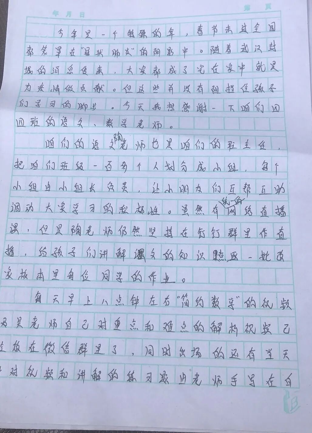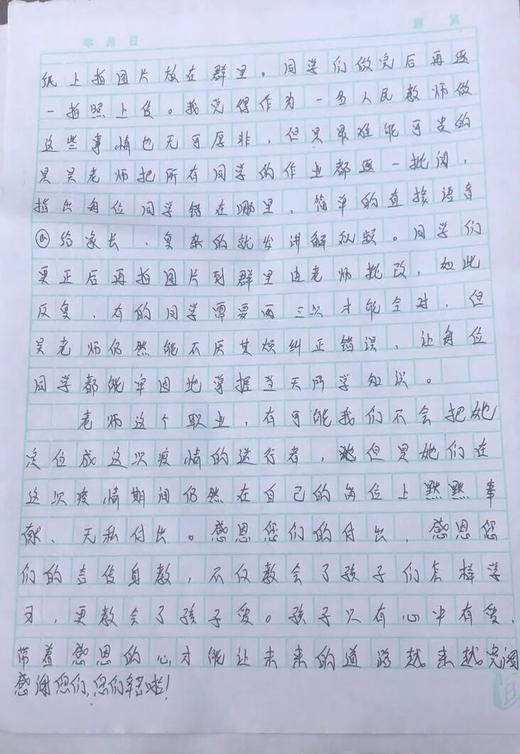 辛勤教师感动家长 一封书信叙心情 ——卧龙区实验学校 中广视网讯: 2月28日,卧龙区实验学校收到了一份特别的礼物——来自四年级四班苏铭坡同学家长的感谢信。这位家长饱含真情的话语,既是对我校教师线上教学的肯定,也是对我们的鞭策和鼓励。在这特殊的疫情期间,这份礼物也着实给我们带来了莫大的鼓舞和感动。非常时期,学校工作的顺利开展离不开所有老师和学生家长的共同支持和努力,面对严竣的疫情形势,面对线上教学的重重难关,我校广大教师迎难而上,尽职尽责,用担当和实干践行着特殊时期人民教师的职责和使命.我们也非常感谢各位家长对我们为解决疫情期间所展开的网络授课工作的大力配合与肯定,以及各位优秀负责的老师对工作精神的领会和贯彻实施,我们会再接再厉,众志成城,共同迎接春天的到来! 今年是一个特殊的年,春节未过,全国都笼罩在管状肺炎的阴影中。随着武汉封城的消息传来,大家都成了宅在家中就是为社会做贡献的时刻。但这些并没有阻挡住孩子们学习的脚步,今天我非常想感谢一下咱们四四班的语文和数学老师。 咱们的语文陶老师也是咱们的班主任,把咱们班级一百多个人分成小组。每个小组由小组长负责,让小朋友们互帮互助,调动大家学习的积极性。虽然有统一的网络直播课但是陶老师仍然坚持在订订群里做直播,给孩子们讲解课文的知识点并且逐一批改家校本里每位同学的作业。 每天早上八点钟左右吴老师就把简约教学的视频和自己对重点和难点的解析视频发放在微信群里了。同时出场的还有当天针对视频和讲解的练习题。这是吴老师手写在白纸上拍图片发在群里的。同学们做完后再逐一拍照上传。我觉得作为一名人民教师做这些事情虽然无可厚非但是最难能可贵的是吴老师把所有同学的作业都逐一批阅指出,还指出每位同学错在哪里。简单的直接语音发给家长,复杂的就发讲解视频。同学们更正后再拍图片到群里由老师批改。如此反复,有的同学需要两三次才能全对,但是吴老师仍然能不厌其烦地纠正错误,让每位同学都能牢固地掌握当天所学知识。 老师这个职业有可能我们不会把它定位成这次疫情的逆行者,但是他们在这次疫情期间一直在自己的岗位上默默奉献,无私付出。感恩您们的付出,感恩您们的言传身教。不仅教会了孩子们怎样学习,更教会了孩子们爱。孩子只有心中有爱带着感恩的心,才能让未来的道路越走越宽阔! 感谢您们,您们辛苦了!(邢有军 ) |