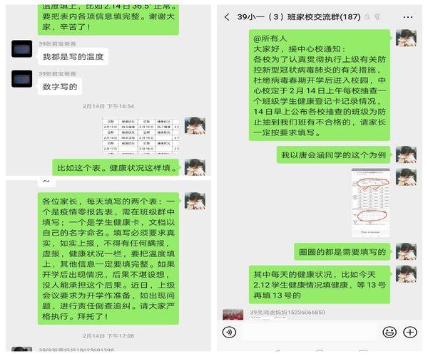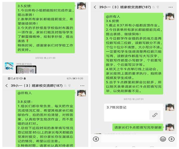 同气连枝,共盼春来——南阳市第三十九小学一三班田晓红老师疫情防控期间工作纪实 中广视网讯:2020年的新春还没有展露笑容,突如其来的疫情已经席卷全国。面对疫情,南阳市第三十九小学根据各级通知精神和学校工作实际情况,组织全体老师开展以防范新型冠状病毒、停课不停学等主题的线上教育活动。 南阳市第三十九小学一三班班主任田晓红老师利用微信、钉钉等网络通讯工具,组织、指导帮助和学生居家自主学习,注重对孩子进行爱国主义教育、生命教育、安全教育等。学校教师线上相结合,限时限量合理安排学习。 田老师作为教师,班主任,面对疫情,面对特殊的假期,尽力尽责,放假不放松,坚持对学生心理健康教育和心理疏导。每天和同学科老师开展线上教研,讨论当日网课内容,有针对的对学生进行指导。 坚持每天7:30左右发疫情“零报告”表单,督促指导家长填写,并及时提醒未填写的家长。 对学校通知的事情,做到及时转达,和家长们进行沟通交流。 家长对健康登记卡填写有不懂或者错误的地方,田老师会及时指正。