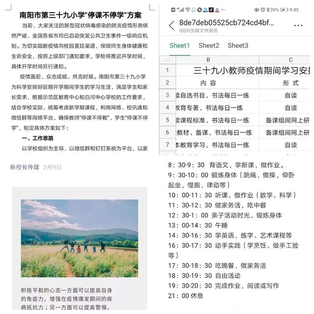 同舟共济克时艰,家校携手战疫情——南阳市第三十九小学焦长庚老师疫情防控期间工作纪实中广视网讯:庚子鼠年伊始,一场突如其来的疫情打乱了全国人民的正常步伐,全国陷入一片阴霾中。很快,镇定下来的中华儿女掀起了一场抗疫反击战。在党中央的坚强领导下,全国上下步调一致,党政军民齐心协力,宅家,隔离,白衣天使奔赴武汉,方舱医院快速建立……中国以坚决果断的处理方式迅速遏制了"新冠病毒"这个恶魔。教育战线上的同仁,也不甘落后。南阳市三十九小学的全体教师,积极响应,第一时间安排了应对措施,一场停课不停学的抗疫大战就此拉开了序幕。 焦长庚,南阳市第三十九小学四二班班主任、数学教师,他怀揣着炽热的教育情怀,在乡村学校多年,2019年8月调入我校,工作任劳任怨、兢兢业业,待人温和、诚恳,关爱学生,是学校唯一的男班主任,孩子们亲切的喊他“班妈”。 疫情袭来,平时不善言谈的焦老师,在学校的安排部署下立即行动起来,确定了“家校携手,共勉进步”的方针,动员家长行动起来,和老师一起关注孩子,和孩子一起学习进步。他做好信息排查的同时,坚持做好每天学生的健康报告,定期向孩子和家长介绍防疫知识和战疫信息,让学生保持平和心态,讲卫生、不外出,听从指挥,宅家学习,不信谣、不传谣。 为了让孩子的假期生活丰富多彩,让孩子们学习、健身两不误,他每天指导家长和孩子一起下棋、跳绳、深蹲起等,举行了班级线上体育运动会,让孩子们展示了运动能力,他为成绩优异的孩子颁发了电子奖状。 焦老师利用节日组织孩子画画、办手抄报、做手工,丰富了孩子们的生活,增添孩子们的生活情趣。"学雷锋日”让孩子们读雷锋故事,纪念雷锋,陶冶了情操,在"三八妇女节"号召给妈妈一点爱,学会感恩。 2月10日,停课不停学网上学习开启,焦老师一边指导学生收看媒体直播,一边迎难而上,在钉钉上与学生互动,辅导、批改作业,他因人而异分层设计作业,保证每位学生在快乐中弄懂、学会。他召开家长会,取得家长的支持与配合,动员家长给孩子多些陪伴,关注孩子,督促孩子天天听课、完成作业。 风雨过后是彩虹,疫情终会如昨天一场暴雨,很快失去它的威力。相信孩子们经历了这场风雨,一定会更加坚强勇敢,乐观开朗。坚定我们的脚步,只管大步向前吧!(邢有军 焦长庚 胡西爽) |