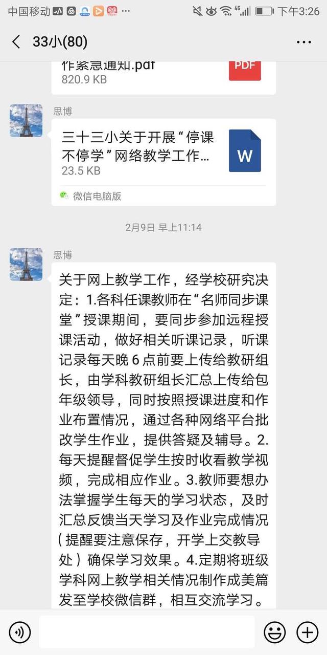 33小六三班停课不停学自主学习篇中广视网讯:由于“新型冠状病毒”的影响,按照学校"停课不停学"的原则,每天,我们六三班的老师们都会通过微信群、钉钉群和学生家长们保持联系,安排语文、数学、英语、体育和实践活动等学习内容,指导同学们在家开展丰富多彩的自主学习。 学习篇——虽然受疫情的影响,但同学们在家仍然珍惜时间,勤奋好学,按照老师布置的学习内容,执行上学作息时间,认真完成每科作业。 才艺篇——同学们多才多艺,办的手抄报棒棒哒! 感恩见行动篇——课余时间,实践感恩见行动,做力所能及的家务,整理桌子、擦地板、洗衣服、摆碗筷和洗碗等等。 运动篇——坚持体育锻炼,劳逸结合。 2020年的寒假,注定是难忘的。抗击疫情,我们众志成城;自主学习,我们毫不松懈。家园合力,携手并肩,让特殊的假期更有意义。(邢有军 张玉洁) |