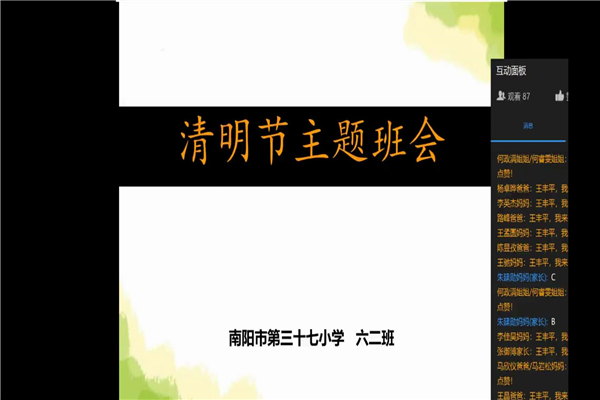 “缅怀先烈 不忘初心” ——南阳市第三十七小学开展清明节主题班会教育活动中广视网讯:为使学生了解我国的传统节日—清明节的来历和习俗,培养学生尊重烈士的情感,教育学生学习烈士舍己为人、不争功名的精神,知道我们今天的幸福生活来之不易。4月1日下午,南阳市第三十七小学各年级开展了“缅怀先烈 不忘初心”清明节主题班会。