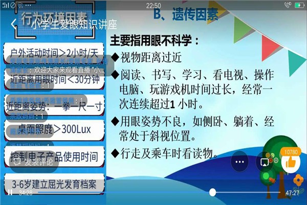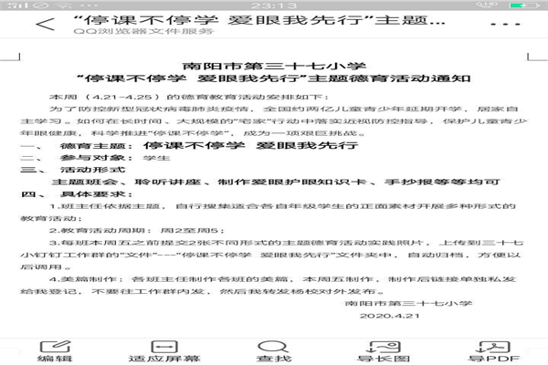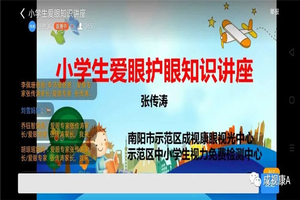 南阳市第三十七小学开展“爱眼课堂”活动中广视网讯:针对近段时间因为疫情不能到学校上课,学生通过网络直播上课,用眼时间过长,对学生视力不好的原因,为了普及爱眼护眼常识,让青少年养成科学用眼习惯。南阳市第三十七小学于邀请河南省南阳市城乡一体化示范区中小学生视力免费检测中心、成视康眼视光中心爱眼专家张传涛通过钉钉网络视频形式,为一到六年级18个班学生上了一节生动的爱眼护眼课,让学生们更加了解自己的眼睛,懂得怎样才能真正的爱护眼睛,普及疫情特殊时期爱眼知识教育,受到广大师生、家长的点赞。