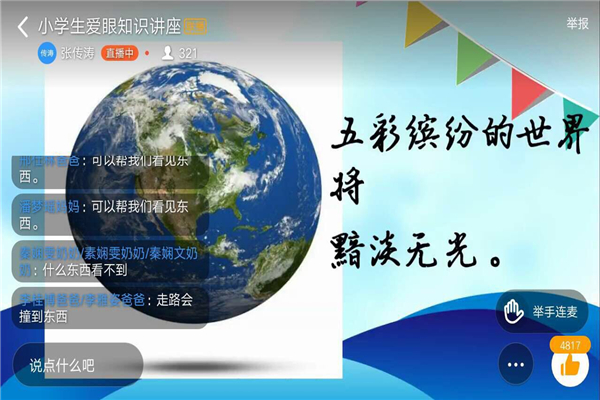 爱眼专家张传涛采用钉钉远程视频的形式,对三十七小学的1800多名学生进行爱眼知识教育,让他们了解并学习网课期间爱护眼睛的科学方法。首先,爱眼专家对本次爱眼知识讲座进行了简短介绍、播放《爱眼健康歌》、《晶体操》等形式,引申出眼睛保健的重要性,成功调动现场气氛,吸引学生们的注意力。