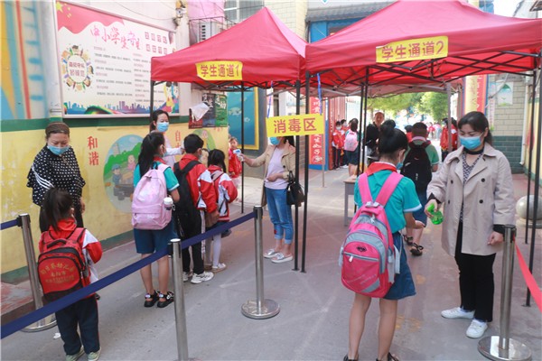 防控疫情坚守阵地,全面抓好复学工作中广视网讯:春风不寒杨柳风,随着疫情日趋平稳,南阳市第三十七小学按照示范区教育中心工作安排,5月6日迎来了师生返校。因为疫情影响空寂许久的校园传来了朗朗读书声,重新焕发出勃勃生机。 疫情就是命令,学生就是责任!南阳市第三十七小学坚决落实好上级的安排和部署,把广大师生的生命安全和身体健康放在第一位,坚决守住校园阵地!