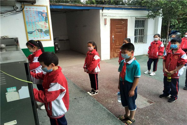 开学前,学校每日掌握教职员工及学生健康情况,实行“日报告”、“零报告”制度,并向主管部门报告;对全体教职员工开展防控制度、个人防护与消毒等知识和技能培训;对学校进行彻底清洁,教室开窗通风;所有外出或外地的教职员工和学生,严格执行返回居住地后应当居家隔离14天后方可返校;做好洗手液、手消毒剂、口罩、手套、消毒剂等防控物资的储备;设立(临时)隔离室,位置相对独立,以备人员出现发热等症状时立即进行暂时隔离;同时制定疫情防控应急预案,制度明确,责任到人,并进行培训、演练。 开学后,学生入校设东西两路纵队,前后间距1米,有序进入学校,在消毒区进行消毒处理,在测温区进行体温检测,发现有异常体温,立即按照体温异常学生处置流程进行处置。同时做好记录。正常体温学生入校后到班,由班主任进行晨检或午检并记录。晨检午检记录有异常的要进行复检,复检不正常,则按照异常体温学生处置流程进行处置。
