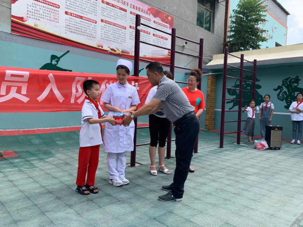 近200名优秀少年第一次佩戴上鲜艳的红领巾在队旗下庄严宣誓:“准备着,为共产主义事业而奋斗!”。坚定的呼号,红扑扑的笑脸、鲜艳的红领巾、迎风招展的队旗,使每一个参加新队员入队仪式的学生和老师们心潮澎湃,倍受鼓舞。 在这次百年难遇的新冠肺炎疫情面前,无数医务工作者慷慨逆行,成为人们心目中的白衣天使。在六一儿童节来临之际,学校向这些医务人员的子女赠送了精心准备的礼物,表达了全体师生由衷的敬意。