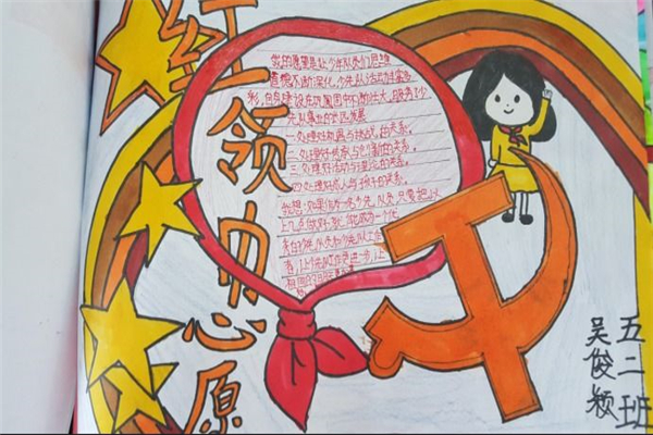 四、开展开展红领巾小心愿手抄报征集活动 在此次“迎接少代会 争做好队员”主题活动中,学生表现最为积极的莫过于表达自己内心的小心愿了!同学们用手中的画笔,用美丽的图画和漂亮的文字做出了一张张充满希望的画卷,淋漓尽致地表达了自己内心的愿望。小心愿手抄报的征集,引导了队员关注国家发展、关注社会建设、关注南阳建设发展、关注少先队集体的意识,收集了少年儿童的心愿,聆听了少年儿童的呼声,增强了少先队员的组织光荣感和归属感。