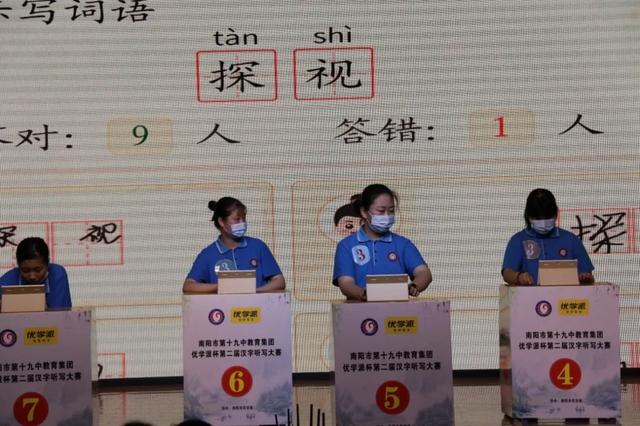 十四、第二届汉字听写大赛 为了弘扬中国优秀传统文化,为学生营造一个热爱汉字的浓厚氛围,丰富我校师生的校园文化生活,7月3日,南阳市第十九中教育集团举办了第二届汉字听写大赛。 本次汉字听写大赛旨在弘扬汉字文化,感悟汉字魅力,更好地了解中国汉字的博大精深,唤醒同学们对汉字的重视和珍爱,引导同学们规范、端正、整洁的书写汉字。 比赛上午九点开始,由主持人王文文、袁宏恺开场介绍莅临活动现场的领导、嘉宾,以及现场的评委老师。