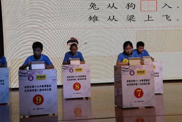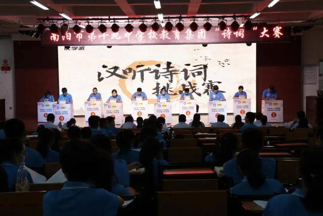 2020年7月3日下午,由南阳市第十九中学校教育集团举办的“第二届诗词大会”在校报告厅圆满落幕。 本次诗词大会得到了全体师生的热情响应,在准备阶段,各个班级的学生读诗背诗热情空前高涨。比赛共分为两个半场,上半场通过平板答题淘汰赛制选拔进入决赛选手,下半场为飞花令环节由进入决赛选手一决雌雄。经过激烈的角逐,最终决出诗词状元、诗词榜眼、诗词探花各一人,二等奖三名,三等奖四名。比赛现场各位选手以饱满的热情,深厚的诗词文化底蕴展现了十九中学子的精神风貌,真是:弘扬中华传统优秀文化,展莘莘学子翩翩风采!