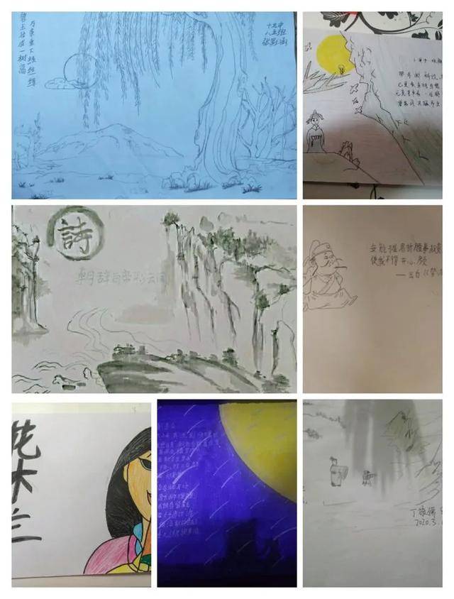 七、疫情期间“古诗苑漫步”活动 根据“停课不停学”期间的教学进度,本周,八年级开展了综合性学习活动——《古诗苑漫步》。八年级语文组从教研制定详细方案,到指导学生参与其中。孩子们从课前跃跃欲试,到直播课后大显身手,同学们学习古诗词的热情高涨,短短两天,汇集了大量优秀作品,呈现于此,共寻诗情!