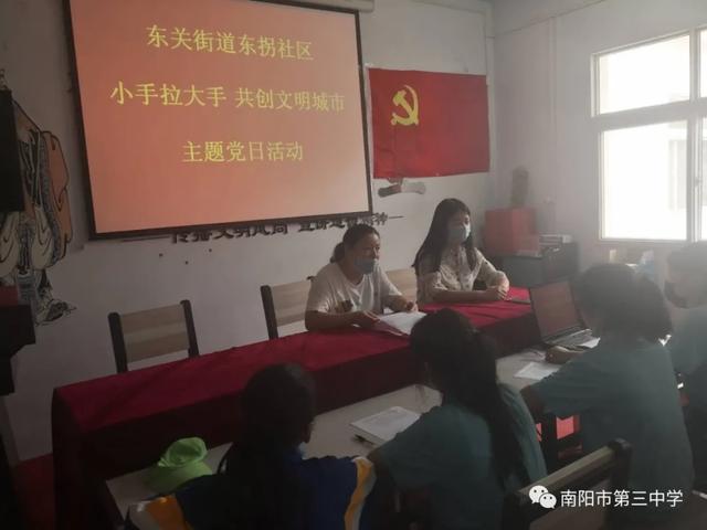 党群同心聚合力 文明家园共创建——南阳市三中党支部开展“小手拉大手 共创文明城”主题党日活动中广视网:2020年8月14日上午,按照区委组织部和区教体局的统一安排,南阳市三中党支部组织党员、学生和家长代表,与东拐社区友好对接,采用学校+社区双阵地的全新形式,共同开展“小手拉大手 共创文明城”主题党日活动,为宛城文明城市创建贡献心力! 学校 本次活动由党支部副书记赵喆同志主持。 首先,由学校负责创文工作的副校长王岭同志就此次活动的目的和意义做了动员,她希望与会人员能身体力行,影响并带动更多的人加入到宛城文明城市创建工作中来。 接着党员、学生和家长代表展开集体讨论:围绕在创文工作中“怎么看、怎么干”的问题,组织引导学生和家长进行集中交流,解决了“学生如何广泛影响带动家长参与创文活动、如何当好小小志愿者、如何监督社区做好创文工作”等问题,进一步统一思想,凝聚共识,形成自觉。 与会党员、学生和学生家长主动学习,积极讨论。党员代表向秋玉、张瑜同志,家长代表宁亚征、周松波同志,学生代表王艺菲、王雨婷同学等争相发言。大家一致认为:文明城市呼呼文明市民,文明市民创建文明城市,家庭是社会的细胞,和谐社会建设从家庭开始,创建文明城市,营造美好家园,离不开每个家庭的共同参与和自觉行为,人人要做文明行为的践行者,做创建活动的参与者。 党员代表向秋玉同志发言 党员代表张瑜同志发言 家长代表宁亚征同志发言 家长代表周松波同志发言 学生代表王艺菲发言 学生代表王雨婷发言 随后,学校下发了《小手拉大手共创文明城》倡议书,并邀请党员、学生及家长共读倡议书,邀请学生代表宋江谣同学再读倡议书,让创文意识入脑入心,切实提升与会人员的文明素养,进而影响并提升宛城人的文明程度。 学生代表宋江谣带领大家学习倡议书内容 社区 社区活动由东拐社区组织开展。我校选派了部分党员、学生及家长参加了社区的活动。 在东拐社区,社区支部书记樊静同志介绍了社区建设和文明创建情况,明确了创文工作的重要性和必要性,希望大家融入社区,为宛城文明创建做出应有的贡献。 为加深师生及家长对创文工作的认识,与会人员填写了创文大讨论记录表,表达自己对宛城创文工作的肯定与期望。 学校、社区讨论学习活动结束后,全体与会人员到东拐社区汇合,配合社区联合党支部开展了“党员群众齐参与文明家园共创建”志愿服务活动。大家分组深入社区住户、商户发放创文宣传单,近距离宣传文明城市创建常识,同时组织人员在社区开展“清洁家园”大扫除活动,力争让社区的每一个角落都洁净整齐,共享美丽家园。 开展志愿服务活动 本次主题党日活动,彰显了基层党组织战斗堡垒和广大党员先锋模范作用,加深了党员和群众的密切关系,将文明和谐的理念传播到家庭、社区,引导广大家长遵守文明规则,共创文明城市,践行服务理念,营造了全社会践行道德规范的良好氛围,调动了学生和广大家长积极参与文明城市创建的积极性,实现了“教育一个学生,带动一个家庭,影响一个城市,文明整个社会”的目的,共同推进城市社区治理和文明城市创建工作。(邢有军 赵傲冰 赵喆 邹迅) |
