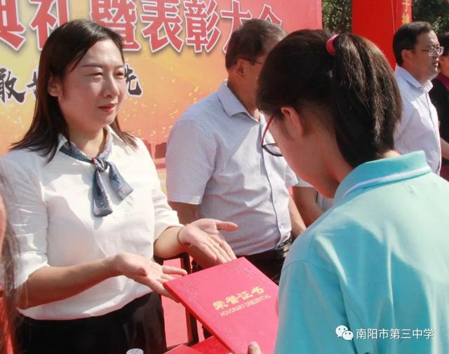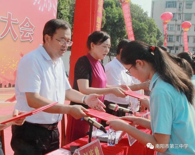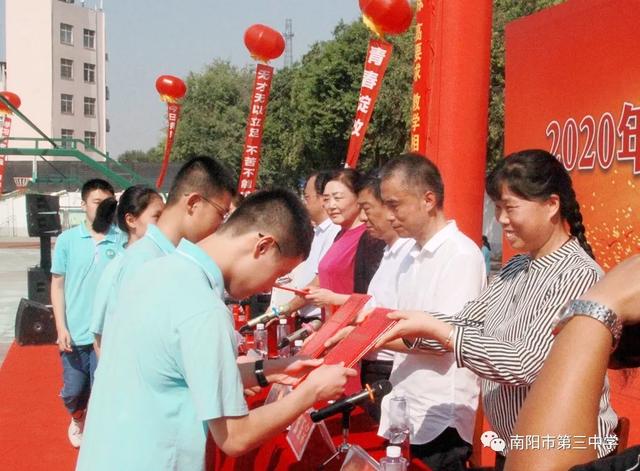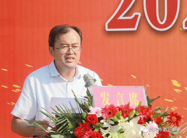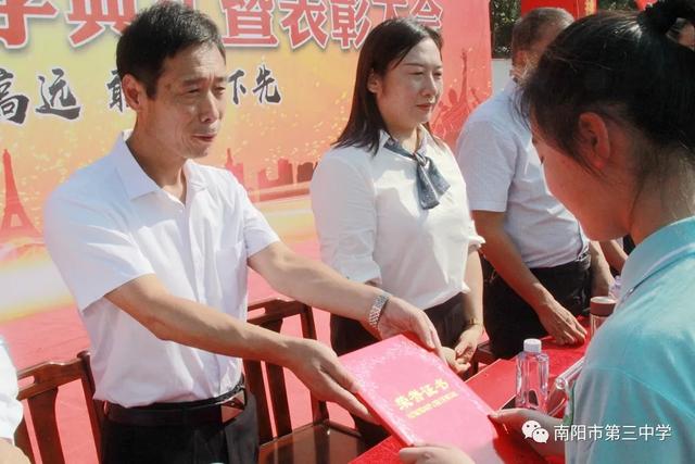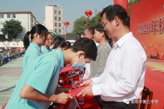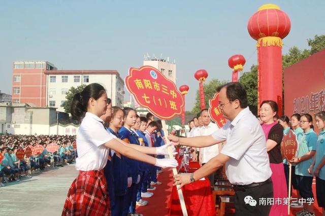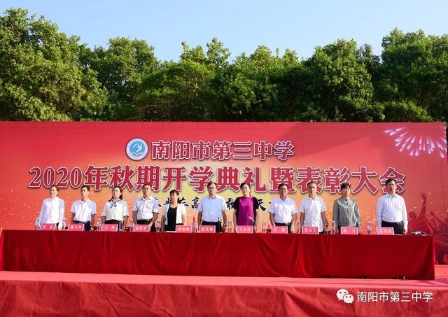 砥砺奋进看今朝 扬帆启航续华章——南阳市第三中学隆重举行2020年秋期开学典礼暨表彰大会九月开学季 金秋九月,兰惠争妍,丹桂飘香,校园一派生机。2020年9月7日上午,南阳市第三中学隆重举行新学期开学典礼暨表彰大会。三中教育集团校长赵庆峰出席典礼并致辞,典礼由校党务负责人王大伟主持。 唱国歌 典礼在庄严的国歌中拉开帷幕,全体师生高唱国歌,当熟悉的歌声响彻校园,浓浓的爱国之情化作新学期扬帆起航的力量。 学校领导为七年级各班授班牌 跨过梦想门、成功门 放飞理想,放飞激情,勇往直前,永不言败。伴着激昂的旋律,踏着整齐的步伐,七年级各班同学意气风发地走过“梦想门”,朝气与活力在每个人身上洋溢,友爱与鼓励在他们每个人心中传递。稳中求进、挑战自我是他们的起点;不懈努力、不倦追求是他们的历程;突破自我、超越自我是他们的目标。让我们共同期待:只要敢于亮剑,他们就能成为强者! 全体学生庄严宣誓 赵庆峰校长致辞 赵庆峰校长向全体师生做了热情洋溢的致辞,他从《开学第一课》“少年强,中国强”这一主题谈起。《开学第一课》以“团结、科学、担当”三个篇幅彰显“人民至上,生命至上”的崇高理念,弘扬自强不息的民族精神,展现了中国少年在这场疫情中的成长和精神面貌。2020年,当“大国崛起”遇上“百年未有之大变局”,我们三中师生更应该用实际行动践行百年三中“志当存高远,敢为天下先”的校训,为此,赵校长对全校师生提三点要求: 1 学生要宁静致远,厚积薄发。希望同学们摒弃优越感,用归零的姿态克服浮躁之心,用积极的姿态保持进取之心,激发内在潜能,去面对初中的学习与生活;去面对成长中的困惑与迷茫。赵校长寄语全体同学:求学行事要沉着稳实,不可浮躁;宁静致远,厚积薄发。 2 师生要心有目标,脚有行动。希望老师同学们找准自己的位置,树立清晰的目标,做一个奔跑者,做一个清醒者,以时不我待、只争朝夕的紧迫感锐意进取、矢志笃行。 3 老师要教书育人,为人师表。赵校长寄语全体老师:要常怀敬畏之心,走上三尺讲台,教书育人;走下三尺讲台,为人师表,全力以赴做精做细每天的工作,以实实在在的行动,货真价实的成绩践行师德师风,回报国家和社会的期望。 教师代表发言 优秀教师代表王达恩老师发言 优秀教师代表王达恩老师发言,他希望同学们始终保持少年的锐气,少年的豪情,谨记三中校训“志当存高远,敢为天下先”,做一个有情怀、会学习、爱生活、成熟大气的三中人,拥有钢铁般的意志、清醒的头脑和一颗勇敢的心,做扶摇而上的风一样的少年!他激情满怀地号召全体同学,自此刻起,万念归一,凝神聚力,心无旁骛,认真学习。怀九万里风鹏正举之志,整心态、明目标、想措施、扬正气,奋力拼搏,日有所长! 新教师代表王伟老师郑重承诺 新教师代表王伟老师郑重承诺:将努力实现教师自身的卓越发展,她说,我们只有将自己打造成合格的、优秀的教师,才能不辱“百年三中教师”这一光荣的称号。在教育的历程中,做到爱护关心每一位学生,积极与学生进行思想交流,以严导其行、以爱暖其心,为每一位学生的卓越发展和终身幸福奠基,为每一位学生的腾飞插上翅膀。 学生代表发言 优秀学生代表八年级8班朱华钰同学从学习能力管理和自主学习方面给大家分享了自己独到的学习方法,她号召同学们厚积薄发、精益求精,创造人生的奇迹。 新生代表七年级8班马梓源同学表达了对中学生活的向往,并代表新生郑重承诺:我们将以坚强的信念和必胜的信心,不断奋斗,努力进取,使三中成为我们走向成功的起点,为三中续写辉煌的一篇。 表彰、颁奖 2020年春期,全校师生积极进取,砥砺前行,奋勇拼搏,涌现出大批优秀班集体及先进个人。副校长胡秋焕宣读了教师表彰名单,副校长张玉宗宣读了学生表彰名单,副校长郭伟东宣读了文明学生、文明班级、优秀学生干部名单,校领导依次为获奖集体和个人颁奖。 副校长胡秋焕宣读教师表彰名单 优秀教师代表上台领奖 副校长张玉宗宣读学生表彰名单 优秀学生代表上台领奖 副校长郭伟东宣读表彰名单 获奖学生和班集体上台领奖 校领导 获奖教师、学生代表 颁奖 新的学期,新的挑战。在新的征途上,意气风发的三中人将携手并进,共同创造更加辉煌的新学年!让我们扬帆启航,不忘初心,牢记使命,再续华章!(邢有军 刘海彬 魏二驰 许刚 庞 |