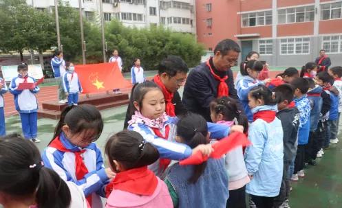47、10月13日是中国少年先锋队建队日,市第二十三小学举行了“红领巾,我为你自豪”新队员入队仪式。这是红色基因的传承,更是红色精神的延续。大队辅导员带领新老队员宣誓,大家一起许下庄重的承诺:听党话,跟党走,奋发有为,做新时代好少年,做社会主义的优秀接班人!(供稿人:申小盼)