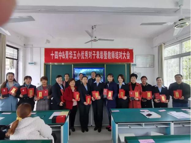 56、10月15日,市第十四中学徐士明校长带领管理团队和学术团队和青华镇中心校杨红照校长一起到青华五小,开展优秀结对教师表彰和新教师结对活动,总结一年来结对工作开展情况,对下一步的工作进行安排部署。(通讯员:张永)