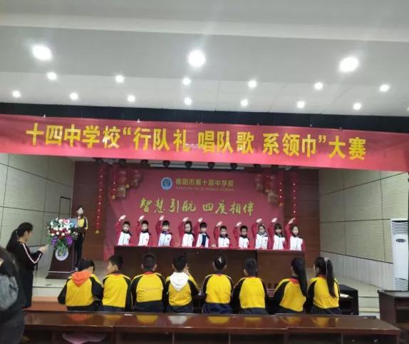 16、10月13日,建队日临近,市第十四中学小学部大队部在学校举行了1至6年级各中队“敬队礼、唱队歌、知队史、系领巾”比赛活动,受到了师生的欢迎。本次活动进一步加强了少先队礼仪建设,让中队辅导员、队员们更深刻地了解了少先队的历史,增强了少先队员对少先队礼仪教育重要性的认识,增强了师生对少年先锋队的深度认同。(市第十四中学张永供稿) 17、10月12日下午,市第十四中学在学校会议室举行了第七届自管委竞聘演讲大会,四十余名不同年级学生走上演讲台,谈自己对自管委竞聘岗位的认识和自己的管理思路。十四中党支部书记费永红领衔的十余位评委经过两个多小时的听评、汇总、谈话,最后定出自管委主席等十七个岗位的人选。(市第十四中学张永供稿)