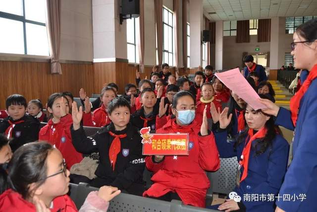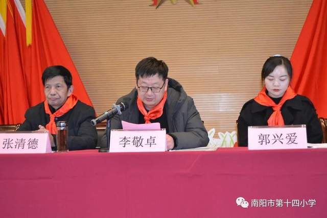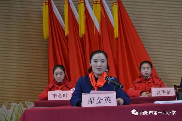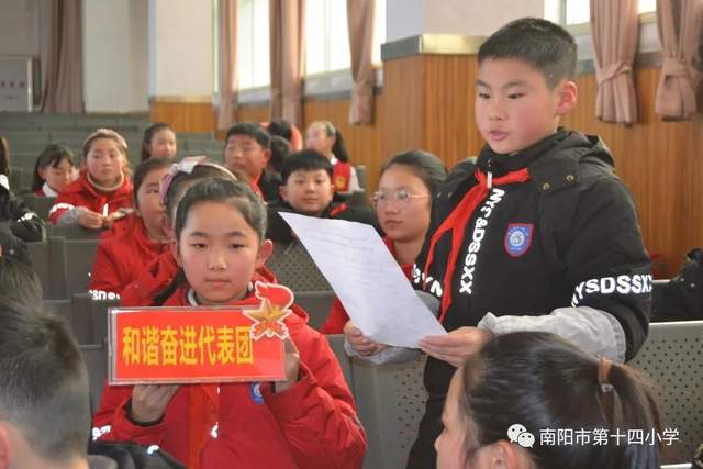 南阳市第十四小学校第一次少代会纪实红领巾心向党 中国梦促成长 你好 少代会 争做好队员 第一次少代会 为响应习近平总书记对少先队员“立志向、修品行、练本领,从小培养热爱党、热爱祖国、热爱人民的情怀,展现出朝气蓬勃的精神风貌”的勉励和号召,增强少先队员的光荣感和使命感,凝聚南阳市第十四小学校少先队组织的力量,2020年12月24日,中国少年先锋队南阳市第十四小学校第一次代表大会隆重召开。 共青团南阳市委学少部部长李敬卓同志、共青团卧龙区委郭兴爱同志、区教体局党组副书记张清德同志、区教体局党办李娟同志和邓璇同志、南阳市第十四小学校长王静同志等领导出席大会,全区各所学校的德育副校长、大队辅导员以及我校185名少代会代表参加会议。大会分为预备会议、主席团第一次会议、开幕式、第一次全体会议、各代表团会议、主席团第二次会议、第二次全体会议及闭幕式八个环节。 预备会议 上午9:50,全体代表在五楼报告厅集合召开预备会议,会议由王非副校长主持,大队辅导员栗金英老师作了本次大会的筹备工作报告。她向代表们介绍了本次大会的流程,包括大会任务和议程、大会的组织人事工作、大会筹备工作等情况,并审议通过了《代表资格审查委员会名单》《代表资格审查报告》、《大会议程(草案)》,以及《大会选举办法(草案)》《大会主席团名单(草案)》和《大会秘书长、副秘书长名单(草案)》等。 主席团第一次会议 上午10:30,主席团进行第一次会议,审议通过《主席团议事规则(草案)》《大会执行主席名单(草案)》《大会选举办法(草案)》《第一届少工委委员候选人名单(草案)》《大队委员会委员候选人名单(草案)》。 开幕式 下午2:00,中国少年先锋队南阳市第十四小学校第一次代表大会开幕式在雄壮的少先队出旗曲中拉开了帷幕。 队员们高唱《中华人民共和国国歌》和《中国少年先锋队队歌》。 南阳市第十四小学校党支部书记、校长王静同志致开幕词,她对本次少代会的召开付出努力的各位辅导员、大队委员和小代表们表示衷心的感谢,向全体少先队员表示亲切的问候。同时,对少先队员们提三点希望:一是把握好今天,从小事做起,从身边做起,在家做个好孩子,在校做个好学生,在社会做一名好儿童;二是希望队员们脚踏实地,勤奋学习,增长才干,和谐发展;三是希望队员们锻炼强健体魄,为实现中华民族伟大复兴中国梦时刻准备着。同时,寄语辅导员老师们,不断探索,大胆实践,勇于创新,用自己无穷的智慧与无私的爱心去奉献少先队事业,在少先队工作这一神圣的岗位上再立新功。 少先队员代表激情澎湃的献词展现了少先队员们争当十四小优秀少先队员的决心以及用红领巾书写十四小学灿烂篇章,时刻准备为中华民族的伟大复兴和实现中国梦贡献力量的远大志向。 团市委学少部部长李敬卓同志对大会开幕式致辞。他指出,南阳的建设和发展需要全市广大干部群众共同努力,也需要少年儿童积极参与。鼓励少先队员们要敢于追梦,勇做奋进者、开拓者、奉献者;陶冶情操、崇德向善;学习先贤先烈先进,追寻红色记忆;从小学习立志,从小学习做人,从小学习创造,磨练坚强意志,锻炼强健体魄,为实现中华民族伟大复兴的中国梦时刻准备着。 区教体局党组副书记张清德同志对大会开幕式致辞。他对大会的召开表示热烈的祝贺并提出希望:希望少先队组织与时俱进、开拓创新,肩负起培养接班人的神圣使命;希望共青团组织加强领导、真抓实干,承担起全团带队的光荣职责;希望广大辅导老师要不忘初心、立德树人;希望少先队员“好好学习,天天向上”。 大队辅导员栗金英老师带领队员们呼号:“准备着,为共产主义事业而奋斗!”“时刻准备着!”铿锵有力的铮铮誓言响彻报告厅,为共产主义事业贡献力量的决心无以言表,将整个开幕式推向了高潮。 图|呼号 图|退旗 第一次全体会议 图|大队辅导员栗金英作《少先队工作报告》 图|德育处兰璐璐老师作红领巾小提案征集汇总说明 各代表团讨论会议 在五个代表团(“和真幼芽团”、“和善蓓蕾团”、“和美百花团”、“和谐奋进团”、“和合硕果团”)的热烈讨论中,队员们深入学习市委、团市委、区教育局领导的讲话内容,积极领会讲话精神,踊跃发言,在各个代表团团长的组织下,进行表决,审议一致通过了《大会选举办法(草案)》《第一届少工委委员候选人名单(草案)》《大队委委员候选人名单(草案)》。 主席团第二次会议 大队辅导员栗金英主持此次会议,会议听取了各代表团讨论情况汇报;通过《大会选举办法(草案)》《少工委第一届委员会候选人名单(草案)》《大队委员会委员候选人名单(草案)》以及《审议学校关于少先队工作报告的决议(草案)》。 第二次全体会议 经过认真审议、表决,大会《大会选举办法(草案)》《少工委第一届委员会候选人名单(草案)》《大队委员会委员候选人名单(草案)》全票通过。第二次全体会议上,工作人员对以上文件进行宣读,共青团南阳市委学少部部长李敬卓同志为南阳市第十四小学校少工委授牌。 闭幕式 在闭幕式上,第一届少工委主任王静同志致闭幕词。她指出,此次会议回顾总结了学校近一年来的少先队工作,确定了今后的目标和任务,选举产生了新一届少工委,对于推动学校少先队事业实现新发展具有十分
