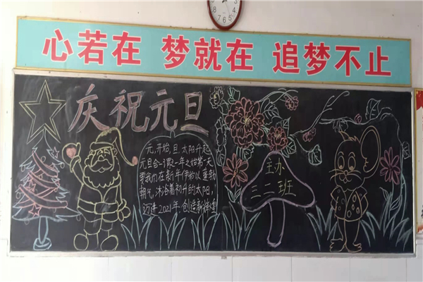 各班围绕元旦主题,精心设计,黑板报主题鲜明,内容有吸引力,美观大方,色彩鲜明,搭配和谐自然,版面设计新颖独特、有风格,体现个性化和创意。