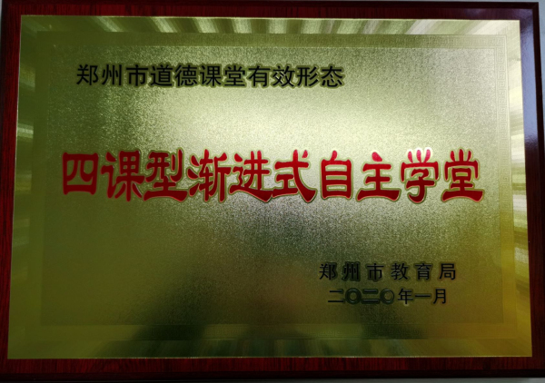 六、教育教学工作取得新成效,获得多项荣誉。 2020年,学校全体师生众志成城、攻坚克难,助力学校教育教学工作再上台阶。学校被评为郑州市义务教育质量提升语文学科活动项目校,承办了政治、地理、历史等多学科区、市及省级的教研活动。学校先后获得了“郑州市道德课堂有效形态”、“学校课程建设奖”、“郑州市中小学德育创新先进集体”、“郑州市2019—2020年度普通中小学教学创新先进单位”,被河南省基础教育教学研究室评为“中小学多文本教学实践研究实验学校”等多项荣誉。