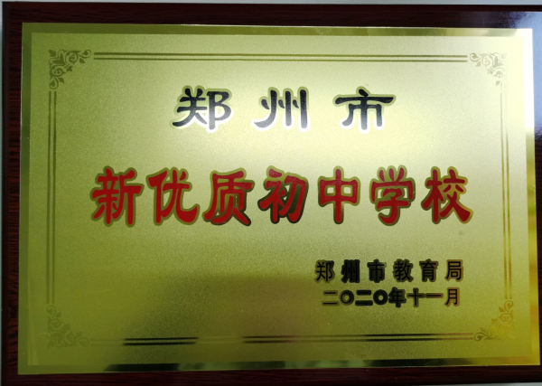 五、质量立校,践行美好教育——被评为郑州市首批“新优质初中”。 学校作为郑州市老牌学校之一,凭着着悠久而光荣的办学历史、厚重的校园文化传统、突出的办学业绩和一系列颇具影响力的教育品牌项目,经郑州市教育局验收,被评为郑州市首批“新优质初中学校”。