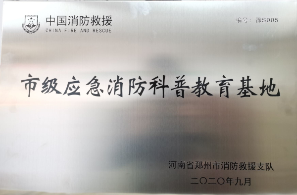 三、平安校园建设持续推进,为教育教学工作筑牢安全之基, 被授予郑州市应急消防科普教育基地。 在认真落实疫情防控和常态化教学工作的同时,学校各部门齐心协力持续完善人防物防技防建设,积极开展校园及周边安全建设年活动,严格开展安全隐患自查工作,做到安全防范无死角,安全责任无疏漏,确保学校师生生命健康安全。9月份,学校被郑州市消防救援支队授予“市级应急消防科普教育基地”。