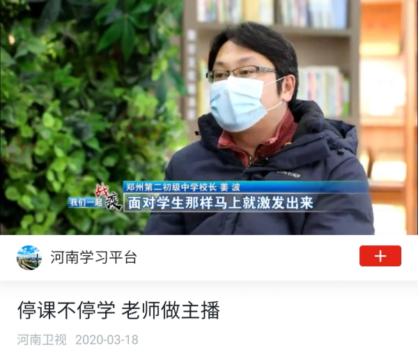 二、疫情防控工作受到上级认可,线上教学工作登上学习强国河南学习平台。 新冠肺炎疫情发生以来,学校高度重视,认真贯彻习近平总书记对新冠肺炎疫情的重要指示精神,全面落实郑州市教育局和二七区教育局关于做好疫情防控工作的安排部署。提高站位,常态化开展疫情防控工作,采取了一系列有效措施,确保防疫和教学两不误。学校的疫情防控工作多次得到各级领导的肯定和支持,3月15日学校的在线教学工作被河南卫视报导,由校长姜波代表学校接受采访做经验交流,并登上学习强国河南学习平台。