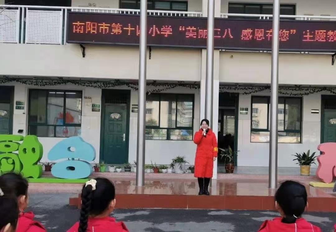 三八节,突如其来的幸福纷至沓来中广视网:3月8日,春雨霏霏,南阳市第十四小学校园里彩旗猎猎,和谐美好。早上,庄严的升旗仪式上,德育处兰老师向学生介绍了“三八”国际妇女节的由来,并为全体女教师送上节日祝福。 上午,领导班子会如期召开,各项工作安排井然有序。在这特殊的日子,突如其来的幸福纷至沓来—— 一束娇艳欲滴的鲜花代表着家长对王静校长的信任与赞赏。 团区委领导来到会议室,对我校“河南好人”武斐然老师进行亲切慰问,并送上节日祝福及鲜花礼品。 鲜花、贺卡、短信、小手工、恭敬地鞠躬、端正的坐姿、微笑的面庞、漂亮的字迹……再寻常不过的小确幸却扮靓了节日,更是对“她”的感恩和致敬!暖暖温情溢满师生心田,神采飞扬的笑脸在十四小校园里绚丽绽放。