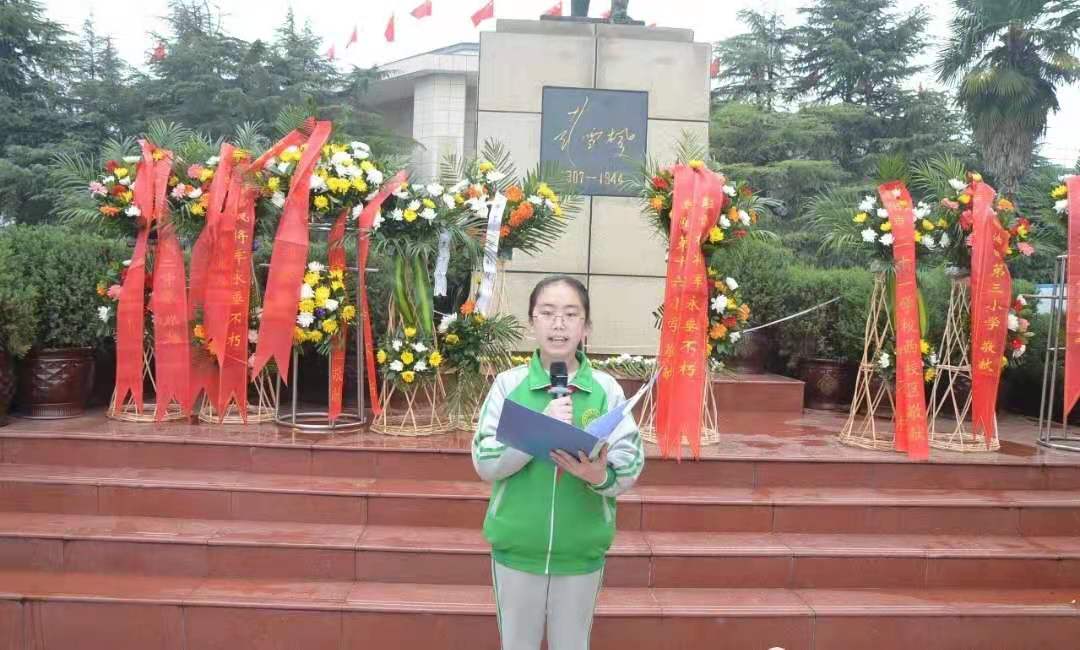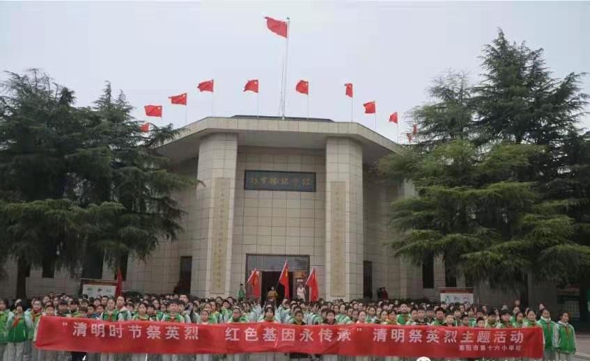 南阳市第十六小学开展“清明时节祭英烈 红色基因永传承”主题系列教育活动走进彭雪枫纪念馆 缅怀革命先烈 中广视网:2021年是中国共产党成立100周年,是国家“十四五”规划开局之年,为加强未成年人思想道德教育,弘扬中华民族优秀传统文化和中国革命传统,引导未成年人慎终追远,缅怀先辈,珍惜幸福生活,激发爱国热情,增强对民族国家的社会责任感和历史使命感。南阳市第十六小学在清明节到来之际组织学生开展“清明时节祭英烈 红色基因永传承”主题系列教育活动。 清明节前夕,学校组织六年级师生来到镇平彭雪枫纪念馆,进行“祭奠英烈 传承红色基因”主题教育活动。在彭雪枫将军雕像前,全体师生举行了庄严的仪式:大家认真聆听彭雪枫将军英勇事迹,少先队员代表向烈士雕像敬献花篮,学校教导处宋柯主任作为代表整理缎带,全体师生向彭雪枫烈士鞠躬致敬。少先队员代表马静怡发言,表达对所有为国牺牲的烈士的追忆与缅怀。仪式结束后,同学们参观了彭雪枫纪念馆,在参观结束后,同学们纷纷表示,要永远铭记英雄烈士的牺牲和奉献,传承和弘扬英雄烈士精神,从小努力学习,长大报效祖国! 少先队员代表敬献花篮 教导处宋柯主任整理缎带 全体师生鞠躬致敬 教导处宋柯主任讲话 少先队员代表马静怡发言 学生参观彭雪枫纪念馆 多种形式并举 感悟清明传统 4月2日下午班会课,各班认真准备,上好清明节主题班会,班会课上,学生们了解清明节日来历,习俗,并认真回顾革命先烈的英勇事迹,感悟他们为国捐躯的革命精神,受到红色革命传统教育。 上好主题班会课 学校大队部还号召同学们用手抄报的形式,表达对革命先烈的追思与缅怀,一张张精美的手抄报,真切表达了同学们在这个特殊的节日里对先烈们的崇敬之情。 除此之外,学校还印发了《南阳市第十六小学文明祭扫倡议书》,宣传普及文明祭扫知识,破除不文明祭扫陋习,向家长及师生宣传文明祭扫的意义,大力倡导以敬献鲜花,栽植花草,网络祭扫等方式寄托哀思,不乱丢祭扫物品,不燃放烟花爆竹,共创绿色环保的清明氛围。 积极参与网上“清明祭英烈”活动 学校组织全校学生积极参与南阳文明网组织的线上“清明祭英烈 千秋永留红”线上追思网络文明传播活动,同学们积极参与,通过电脑端和微信端进入活动页面,积极留言评论,用这样的方式来表达对革命先烈的追思与哀悼。 本次主题系列教育活动的开展,进一步激发了学生的爱国热情,增强了他们的民族认同感,让所有学生都更深切地感受到现在幸福生活的来之不易,激发他们立志勤奋读书,牢记自己的誓言,不忘初心,砥砺前行,报效祖国!(邢有军 徐坚) 编辑:胡明跃 |