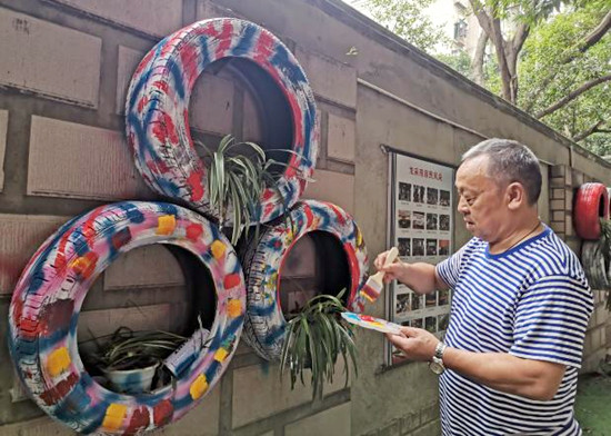 为提高居民的幸福指数,创造一个美丽整洁、宜人宜居的小区环境共同出力,本次邀请了绘画老师、院落代表,党员代表等人员的参加。下午两点,志愿者们便蓄势待发,拿着准备好的彩绘进行涂鸦,大家分工合作,集思广益,有的调整色调,有的提笔作画,不到一会儿轮胎上面就出现了天马行空的涂鸦画,使原本黯然失色的轮胎焕然一新。