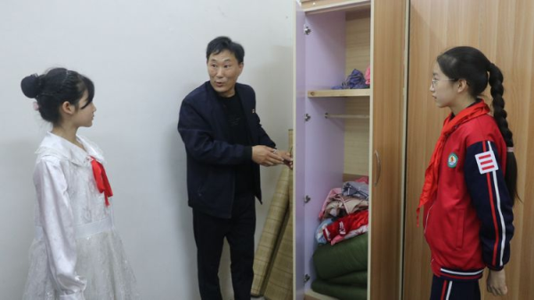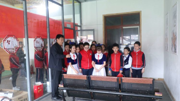 李营村党支部李书记带领少先队员参观幸福大院并介绍敬老院的历史和各项设施,队员们听的津津有味。
