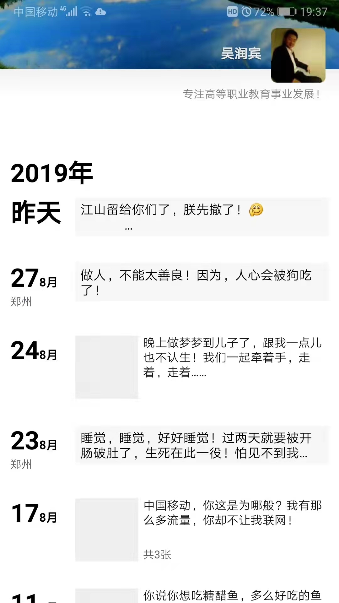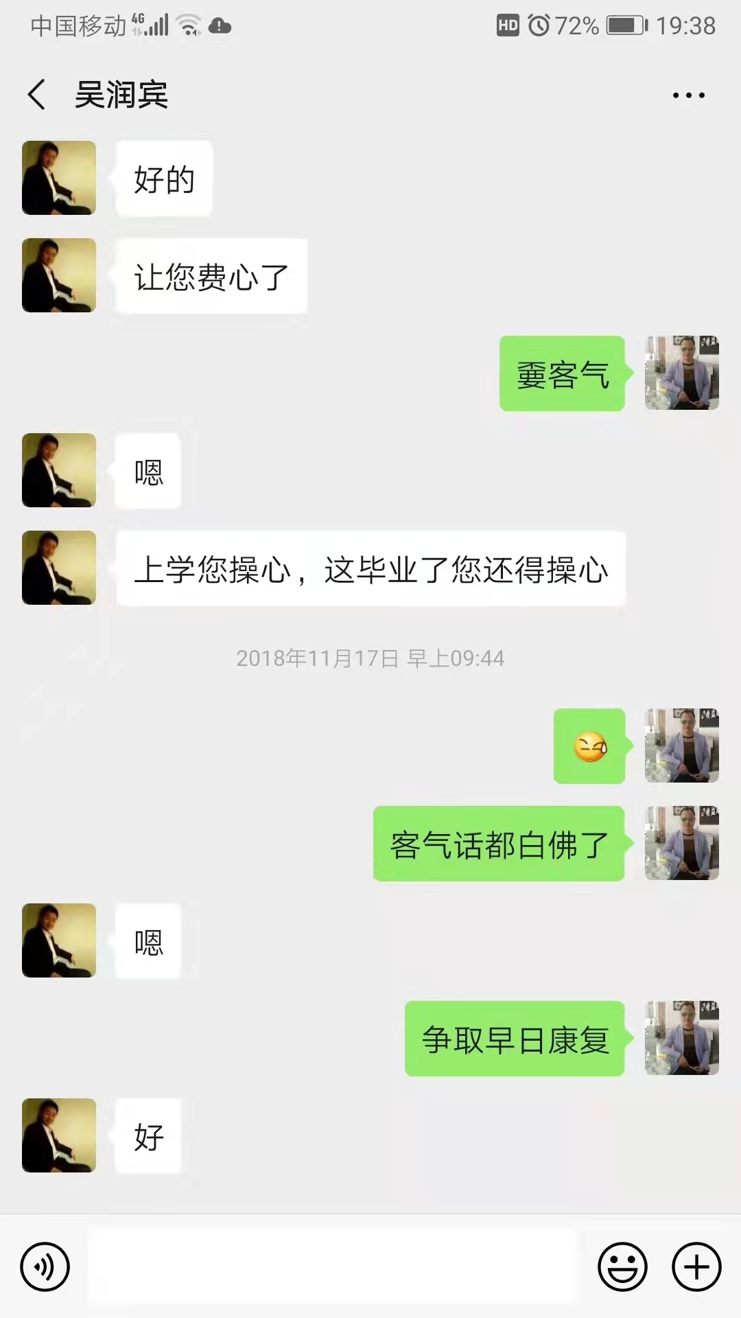 悼念:我的学生——润斌“江山留给你们了,朕先撤了”这是我的学生润斌走前最后一条朋友圈! ![]() 小伙子走了,带着无限留恋和遗憾走了。 毕业后的第一届也是唯一一届学生里的那个绿西装阳光男孩,我叫他“小吴(润斌)”。 “润斌”的个子瘦高,所以,总是站在可后的位置,在人们的脑袋上露出“酸酸”的笑容。 “润斌”是我教高一时,比较听话的学生之一,上课时非常注意听讲的一个阳光男生(印象中,似乎和田策、致远、小立喜欢下象棋)。 当时,刚刚大学毕业的我,就职于"前无古人后无来者"进修学校高中部(16年过去了,至今我都能喊上每个学生名字。而且,非常引以为傲的是——张老师)。 学生们多数来自柘城的农村。 在这群孩子中间,润斌给我的印象是嘻嘻哈哈,哈哈嘻嘻地走去上课、走去吃饭。印象中,他总是穿着绿西装,圆圆的脸上挂着淡定的微笑,目光善良而又深邃。 见到我马上变得极其凝重,认真地打招呼——“张老师好”。 有一次,我看到的“润斌”和往次不同,特立独行。 那是高一快结束的时候,他和小余同学或者小立他们打篮球时(时间久元,记不清具体人物了),他们一招一式,特别认真,很夸张,很张扬。 我有点不敢相信,这是老老实实的“润斌”! 记得有一次课外沟通,他说:“”张老师,我语文不太好,但是想写写自己的经历,见闻、感想,怕写不好。”稚气得如一个孩子。我鼓励他,我手写我口,自己是自己成长的记录者,没有写不好,只有不好好写。现在想想确实如此 其实,“润斌”长得很帅气,有点小鲜肉的模样。我想喜欢他的女孩子应该不少。但他又是一个爱脸红,似乎在女孩子面前有些小紧张的男生。所以,虽然没有真正见过他的妻子和孩子,我想一定也是和他一样开朗、活泼! 得病期间,我经常鼓励他要锻炼身体,直面人生。还常常让他笑对病魔:人生没有过不去的坎,男人没有过不去的山… 可就在今天上午,小曹(一个学生)给我说他去世了,我心里难受到现在… “生如夏花之灿烂、去如秋叶之凋零” 对“润斌”我所记忆的是“夏花之灿烂”。 零落入泥碾作尘,唯有香如故…… ![]() ![]() ![]() (张紫轩) |