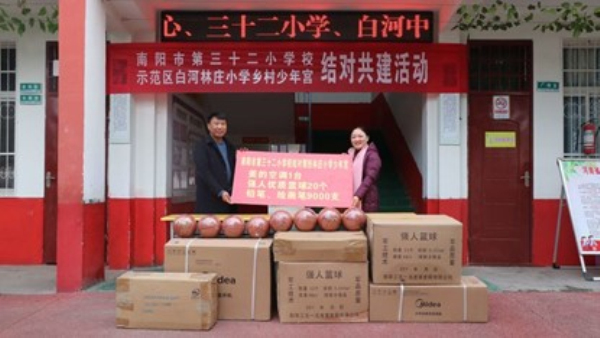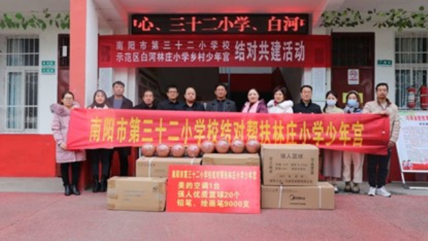 结对帮扶促提高 爱心捐赠送真情———南阳市第三十二小学结对帮扶林庄小学少年宫活动 为充分发挥河南省省级文明校园学校的引领、辐射、示范作用,贯彻落实市文明办精神,不断有效推动结对共建活动的开展,进一步加强城乡教师之间的交流与学习,把开展乡村学校少年宫结对交流学习工作落到实处,12月16日上午省级文明校园南阳市第三十二小学校一行人在教育中心陈汉钦主任、李轲科长和南阳市第三十二小学校党支部书记、校长曹瑞霞的带领下赴结对帮扶林庄乡村小学少年宫开展结对帮扶送课、送物资活动。