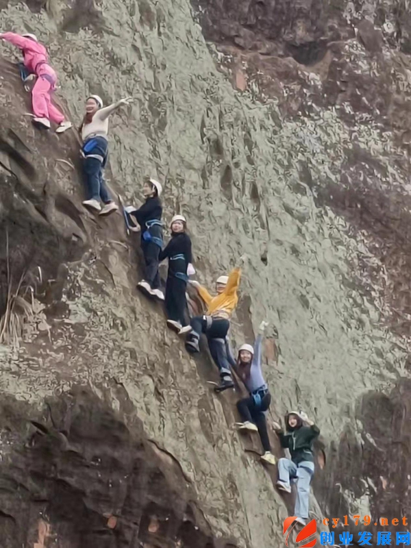 东岳观镇中学全体教职员工户外攀岩阳光合影 据了解,上午十点,该校全体教职员工驱车前往到达风景秀丽的甘堰乡红岩岭村,个个精神焕发、热情高涨,人人激情飞扬,阳光十足,积极参与户外攀岩活动。热身游戏新鲜有趣、空中走索惊险刺激、高空攀岩挑战极限。