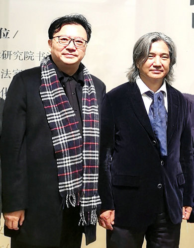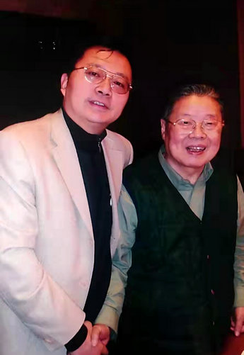 雍刚与第三届中国书法家协会副主席李铎在一起亲切交流 “书画是技、艺、道的综合,也是一个人综合素质和修养的体现。一个书家不仅要修技,还要修艺,更重要的是要加强人文修养,加强人格修炼,追求人生的更高境界。所以,一个真正的书画家既是书写绘画的高手,更应当是人格的楷模,思想的智者。我追求的是对自然生命的敬畏和积极健康的信息,是对世间真情的褒奖和对人们美好的祝愿,是生命本真的心性流露。”雍刚先生接受记者采访时说。