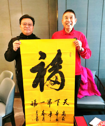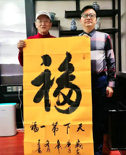 著名表演艺术家谢芳、张目夫妇收藏雍刚书法作品《福》字 雍刚先生是一位诗书画兼能,非常全面的艺术家。但在他的人际交往中,记者发现,他常常送亲朋好友书法作品时,以“福”字居多。谈及对福文化的理解时,他说:“福文化源远流长,既是中华民族世世代代的不懈追求,也是当代中国人的‘中国梦’,它寄寓了中国文化的凝聚力与温情,赋予了新时代给我们带来的福气,我们要珍重、守护、弘扬新时代,更把福气送给大家。”
