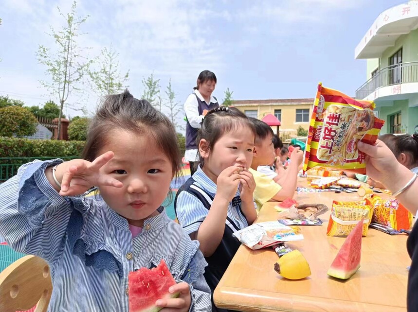 在各班级组织完活动后,全体教师又共同在校园内举行以“点亮六一,共护未来”主题活动。幼儿园为小朋友们准备了丰富的水果,有甜甜的西瓜、香蕉、千禧果、桃子等,各种各样孩子们喜爱的零食,还有又香又糯的粽子。同时园长奶奶也为小朋友的节日表示深深的祝福,瞧!孩子们品尝着各种各样的美食别提多开心啦! 汪庄户幼儿园 汪庄户幼儿园以“快乐六一“疫”起成长”为主题,以绘画、手工送给自己礼物的形式来表现孩子的童真。让每个孩子都能找到自己的亮点,使每个孩子的个性得到飞扬,潜能得到充分的发挥,在积极的参与中体验成功、合作与交往的快乐。从而度过一个幸福、难忘的“六一”儿童节,同时也加强了师幼之间的沟通和联系。
