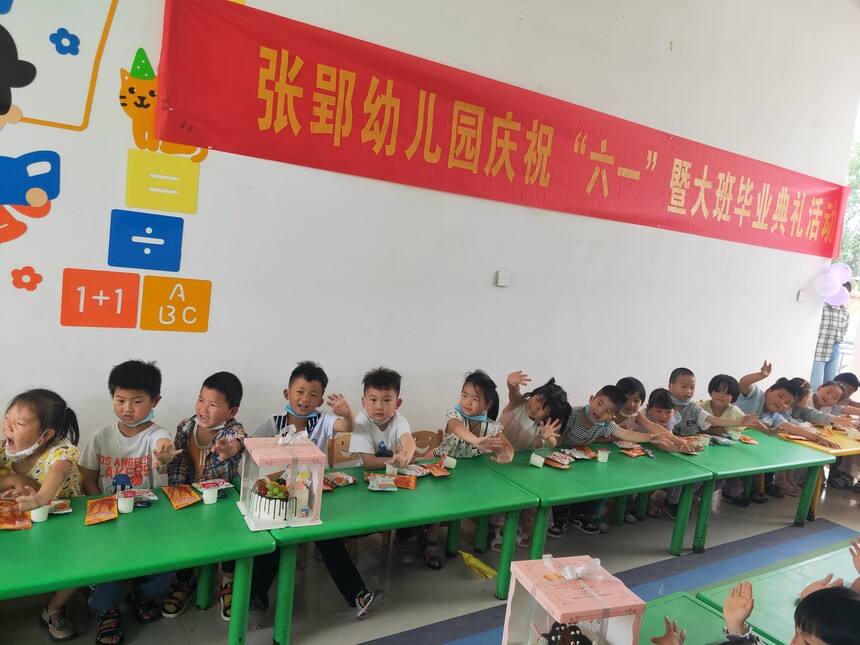 张郢幼儿园 张郢幼儿园举办了以“阳光下成长,快乐中飞翔”为主题的庆六一暨大班毕业典礼活动。活动前制定了详细的活动方案,园长对全体教职工进行了明确的分工,教师们精心的布置场地,营造出浓厚的节日氛围,从场地,时间,天气,食品等等各个方面着手选择准备,无不体现出老师们对这次活动的重视。由于疫情,家长无法到场参与线下的活动,去观看幼儿的风采展示,但各班教师会做好记录,抓住美好的瞬间,通过线上宣传方式向家长汇报幼儿的精彩表现。 活动开始,张郢幼儿园园长向全体师幼致以最诚挚的祝福,向即将毕业的孩子们送去美好祝愿,接着全体教师以一段装载着满满的祝福的舞蹈也给孩子们送去了祝福。一个个精彩有趣的,温馨而又多样的节目接踵而至!孩子们的脸上洋溢着满满的幸福与喜悦。大班幼儿的一首《毕业诗》朗诵,让浓浓的不舍和浓浓的师生情推向高潮!亲爱的孩子们即将离开幼儿园,升入小学,老师们希望他们能够健康快乐茁壮成长!