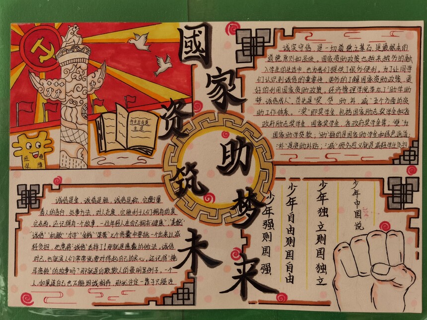 为切实做好学生资助政策的宣传工作,让广大学生更加全面和深入了解国家中职资助政策,确保学生资助政策顺利贯彻实施。连日来,利辛县机电科技学校开展“诚信资助”为主题的绘画展比赛活动。