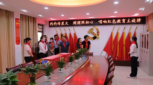 以党建带队建 传承红色基因—南阳市第三十二小学迎接河南省中小学党建带队建工作示范校评估验收6月29日,河南省党建带队建示范校评估小组河南省少先队工作学会会长刘孟琴、河南省少先队工作学会副秘书长王梦、团省委少年部(维护青少年权益部)程景丽一行在团市委四级调研员唐珂、团市委学少部长李敬卓、 基教一科范东升及城乡一体化示范区管委会赵红梅主任、周琼琳主任,示范区教育中心万旭主任、陈汉钦主任、董英豪科长的陪同下,对南阳市第三十二小学创建党建带队建示范校工作进行评估验收,南阳市第三十二小学校党支部书记、校长、少工委主任曹瑞霞带领学校党支部成员、校委会成员接受评估验收。