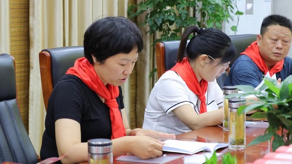 南阳市三十二小学党支部书记、校长、少工委主任曹瑞霞同志以《坚守初心 担当使命—让红领巾更加鲜艳》为题,从坚守初心,担当使命,让星星火炬更加灿烂;铸魂强基,聚力赋能,让少先队组织建设更加规范;立德树人,守正创新,让辅导员队伍建设更加扎实;强国有我,请党放心,让红领巾更加鲜艳;同心协力,同频共振,让党建带队建保障更加有力等几个方面汇报了南阳市第三十二小学校在党建带队建工作中的主要做法和取得的成绩。
