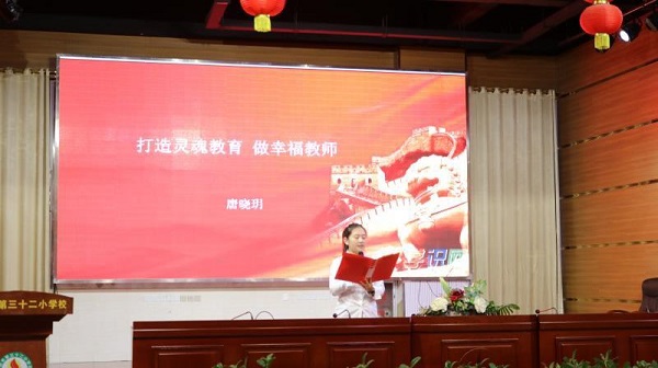 唐晓玥老师以《打造灵魂教育,做幸福教师》为题讲述着教育故事,并 以“不断学习 突破自我”为目标,“定格目标 蓄力奔跑”,决心学习教师楷模、传承榜样力量、不负时代使命,幸福做老师。