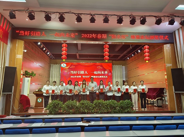 我们不会忘记美丽的颂歌:教师,太阳底下最光辉的事业!他们以蜡烛的精神去燃烧,让未来之光永驻;以春蚕的行为去吐丝,让希望之树长青;以人梯的态度去架桥,让鲜花遍地开放;以黄牛的风致去耕耘,让绿树扩展年! 我们更不会忘记责任:教师,人类灵魂的工程师!他们传道,授业,解惑,用智慧的双手,雕塑着懵懂的灵魂;用知识的火种,照亮着成功的彼岸;用神奇的话语,化解旅程的冰封!蓦然回首,已是粉笔染鹤发;终究无悔,仍要雏鹰上云端! 伴随着主持人对教师的一句句的赞美、一声声责任的阐述,“当好引路人 一起向未来”——“阳光杯”师德论坛拉开了序幕。 本次论坛活动,通过层层推选,本着“公平公正”的比赛原则,推选出的17位优秀教师紧紧围绕“当好引路人,一起向未来”这一主题,以真实的内容、真挚的感情、生动的语言,从不同的角度和不同层面阐述了对教育事业的初心、爱心、耐心和责任心,诠释了自己当好引路人的理解和感悟。 《匠心筑梦,共赴未来》,孙铮老师的分享激情四溢,诠释了老师责任:肩上有一副担子,一头担着义务,一头担着责任;心里有两个心房,一个装的是良心,一个装的是爱心。