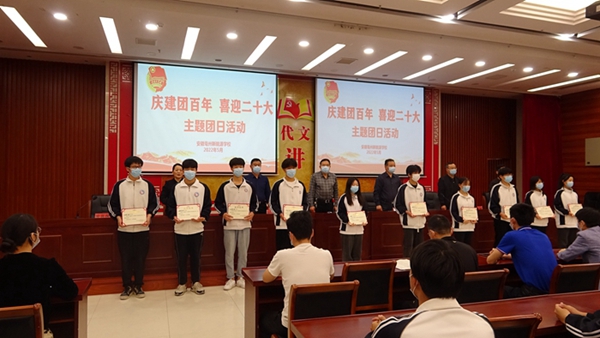 安徽亳州新能源学校:青春心向党 建功新时代 ——“庆建团百年 喜迎二十大”主题团日活动为庆祝中国共青团成立100周年,继承和发扬五四精神,5月3日下午,安徽亳州新能源学校开展“庆建团百年 喜迎二十大”主题团日活动,活动由校团委书记夏飞主持,在校领导、青年教师代表、青年学生和团员代表共120余人参加,参会人员严格按照疫情防控相关要求,间隔落座。
