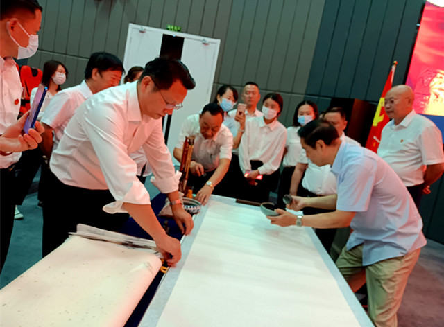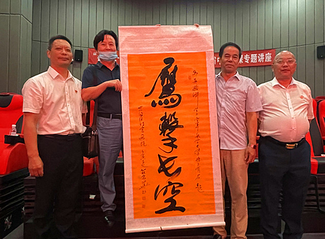 当天,庄宏华院长还不顾刚做完长达三个小时讲座的辛劳,更来不及吃午饭和午休,竟一鼓作气地为前来聆听讲座的嘉宾们现场创作了“永远跟党走“、”“风清气正”、“警钟长鸣”、“鹰击长空”、“前程万里”等数十幅技艺精湛、意涵深远的书法作品。嘉宾们更是为庄院长笔走龙蛇、行云流水、笔精墨妙、神妙绝伦的高超书法艺术深深折服。大家交口称赞,钦羡之语不绝于耳,溢美之词无以复加,以至于庄院长被一波又一波的,为能求得一纸墨宝的热情书法爱好者们簇拥着,长时间脱不了身,差点误了食堂的午餐,最后只得答应“饭后继续”才罢…… (记者 刘昕 现场报道) 责任编辑:张彪 |