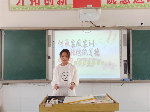在主题班会活动中,各班精心准备,内容丰富多彩,通过观看视频、讨论交流、师生互动等形式,一些正能量的东西冲击着学生的心灵,在受到感染与教育的同时,同学们畅所欲言,讲述着自己的家规、家训和家风,与同学们分享这自己成长中的得与失,探讨者家风、家训的意义和作用。