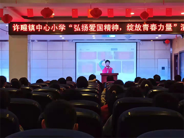 弘扬爱国精神,绽放青春力量弘扬爱国精神,绽放青春力量 ----许疃镇中心小学举行爱国主义教育演讲比赛 为贯彻立德树人根本任务,激发学生爱党爱国情怀,弘扬爱国主义精神和民族精神,增强孩子们的爱国意识和积极向上的校园文化氛围和浓郁的书香氛围,树立远大的理想,安徽省亳州市蒙城县许疃镇中心小学举办了主题为“弘扬爱国精神,绽放青春力量”的爱国主义演讲比赛,以实际行动迎接中国共产党第二十次全国代表大会的胜利召开。 活动开始前,全体起立,奏唱国歌,主持人介绍莅临本次比赛的学校领导和评委老师,并宣读比赛规则和评分标准,活动在雄壮的国歌声中拉开帷幕。